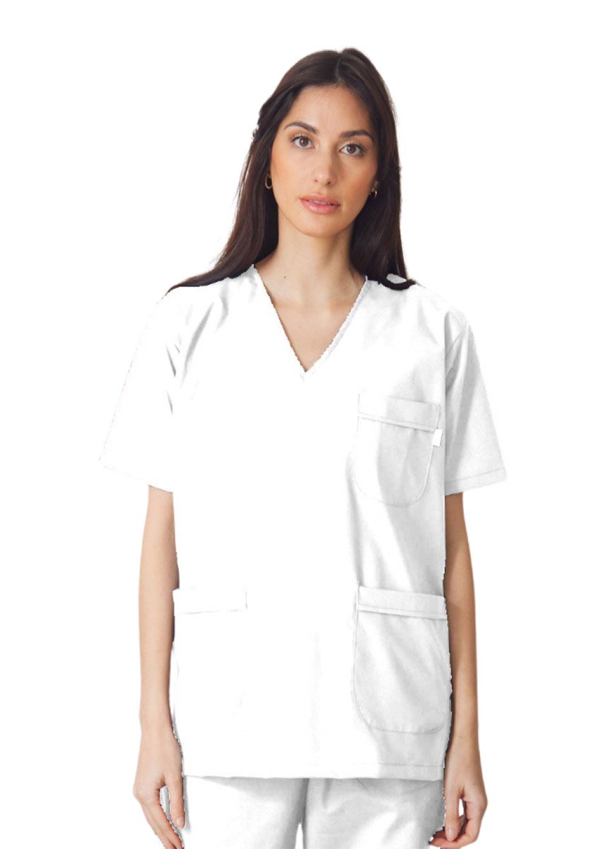 Chaqueta escote V clásica unisex de corte recto.
