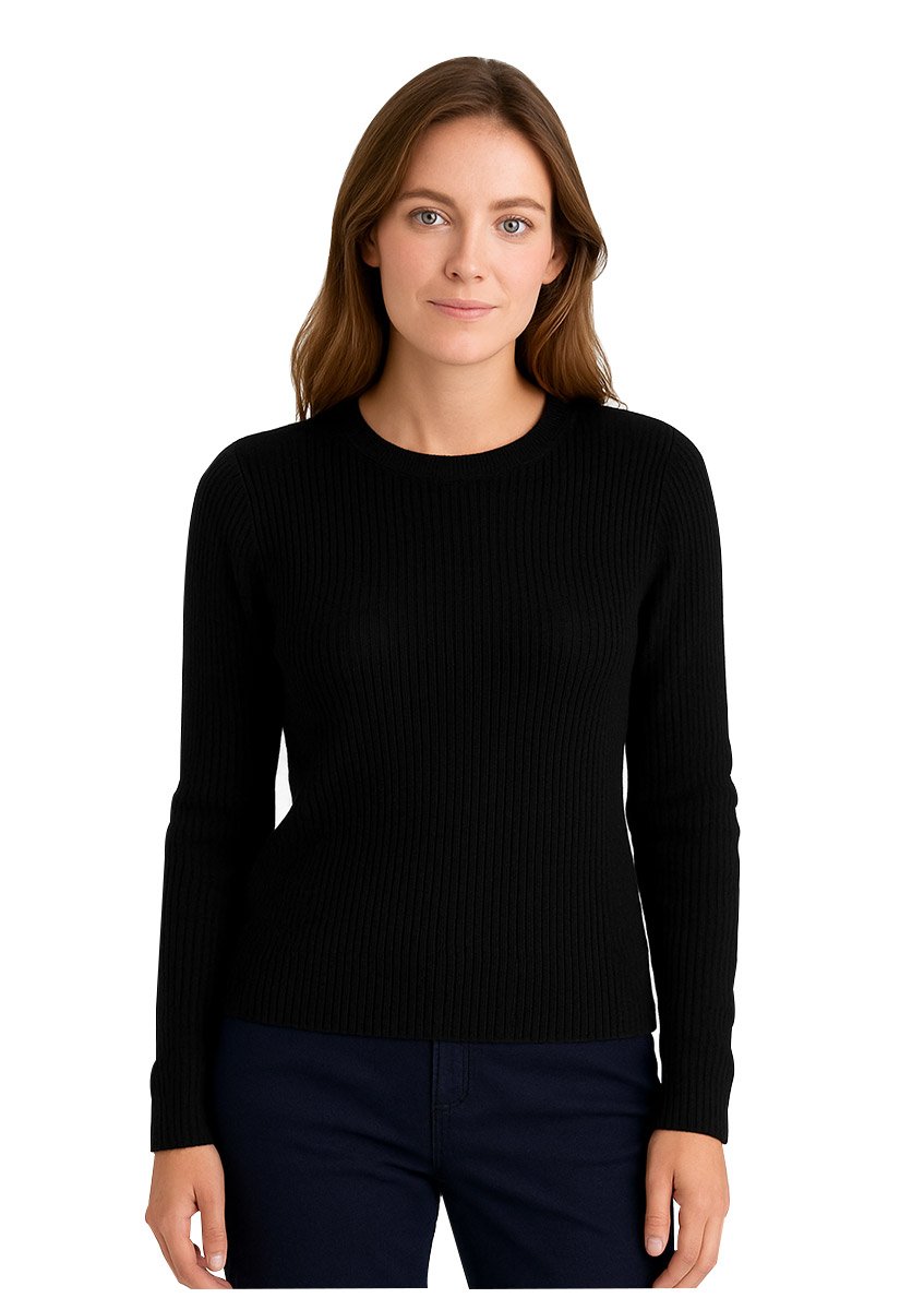 Descripción: Sweater femenino con escote redondo con lycra punto jerseyColor: negro