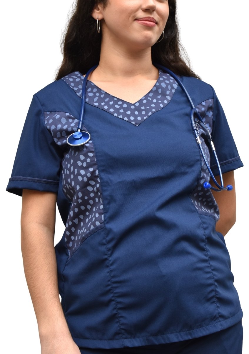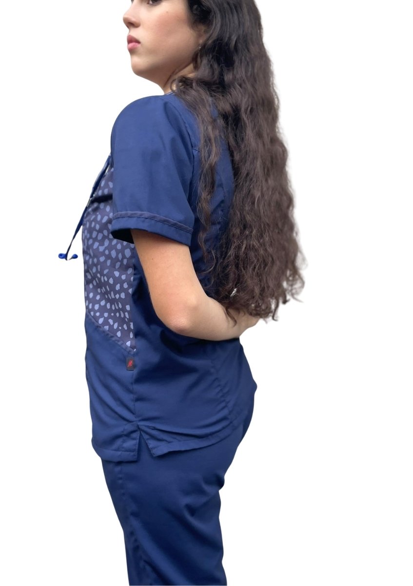Ambo TELA superflex (64% poliéster/ 34,50% viscosa/ 1,50% elastano) combinado en escote y laterales con estampa.