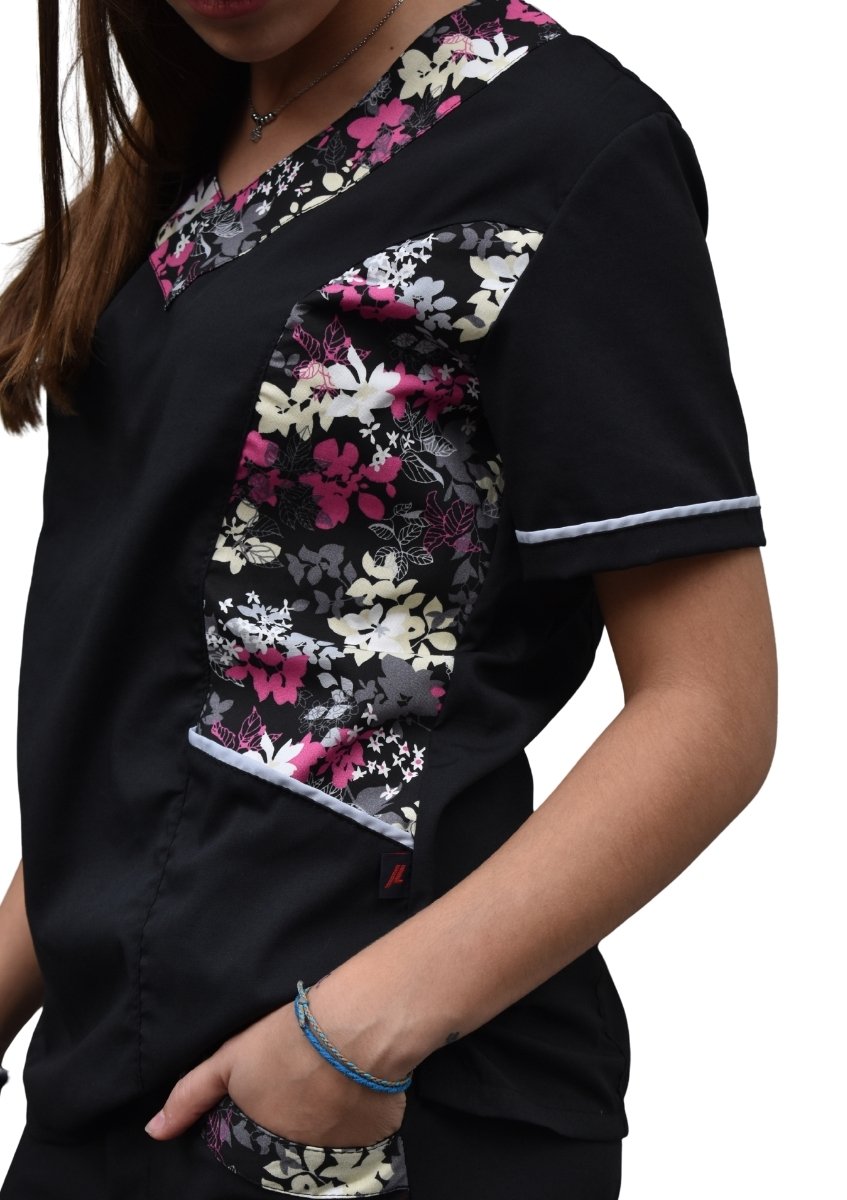 Ambo TELA superflex (64% poliéster/ 34,50% viscosa/ 1,50% elastano) combinado en escote y laterales con estampa.