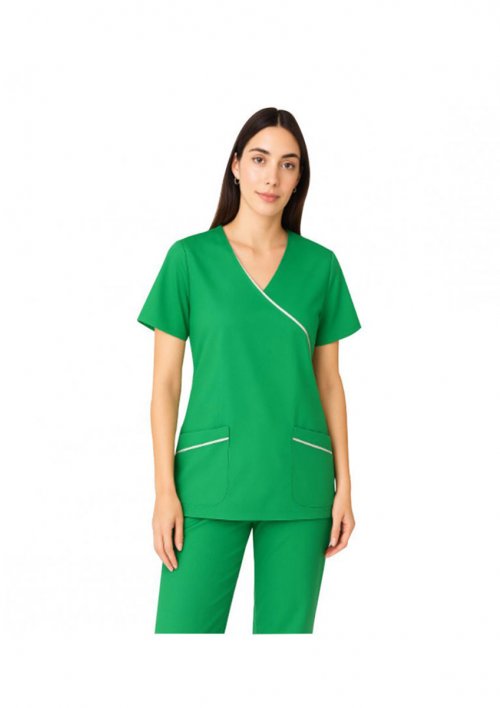 Chaqueta femenina entallada cruzada con faldón curvo.