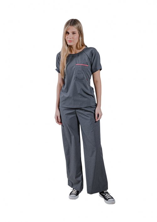 Pantalón ancho con cintura elastizada en microfibra melange elastizada.