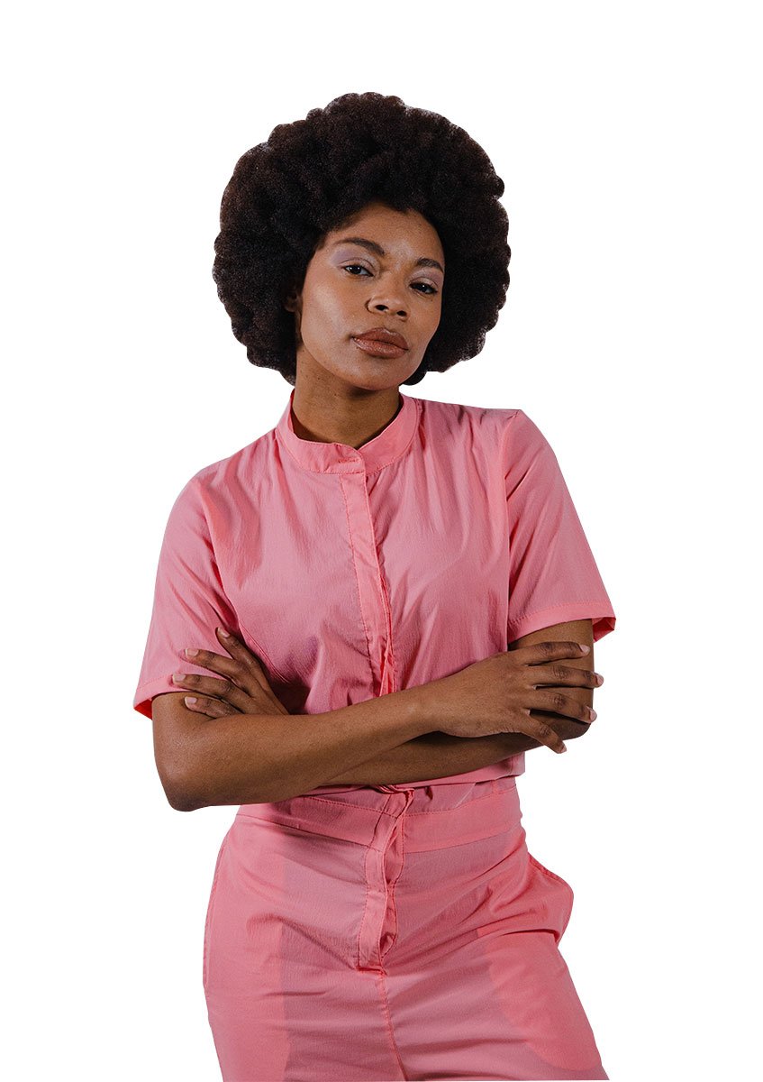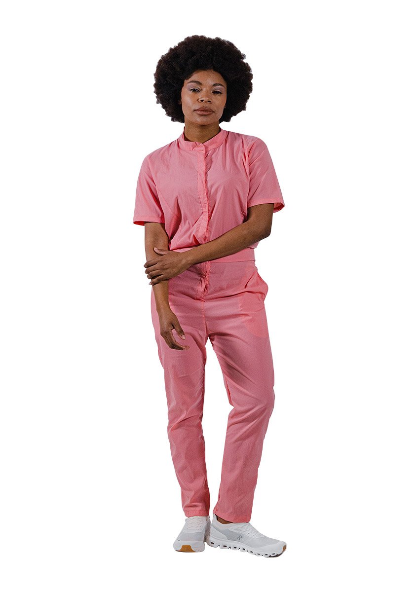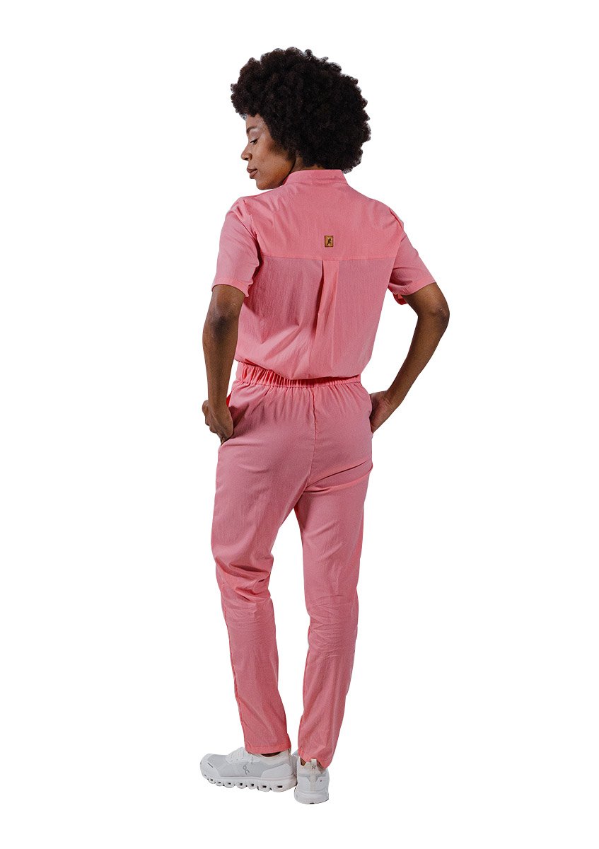 Enterizo tipo camisa con cuello mao y elástico en la cintura