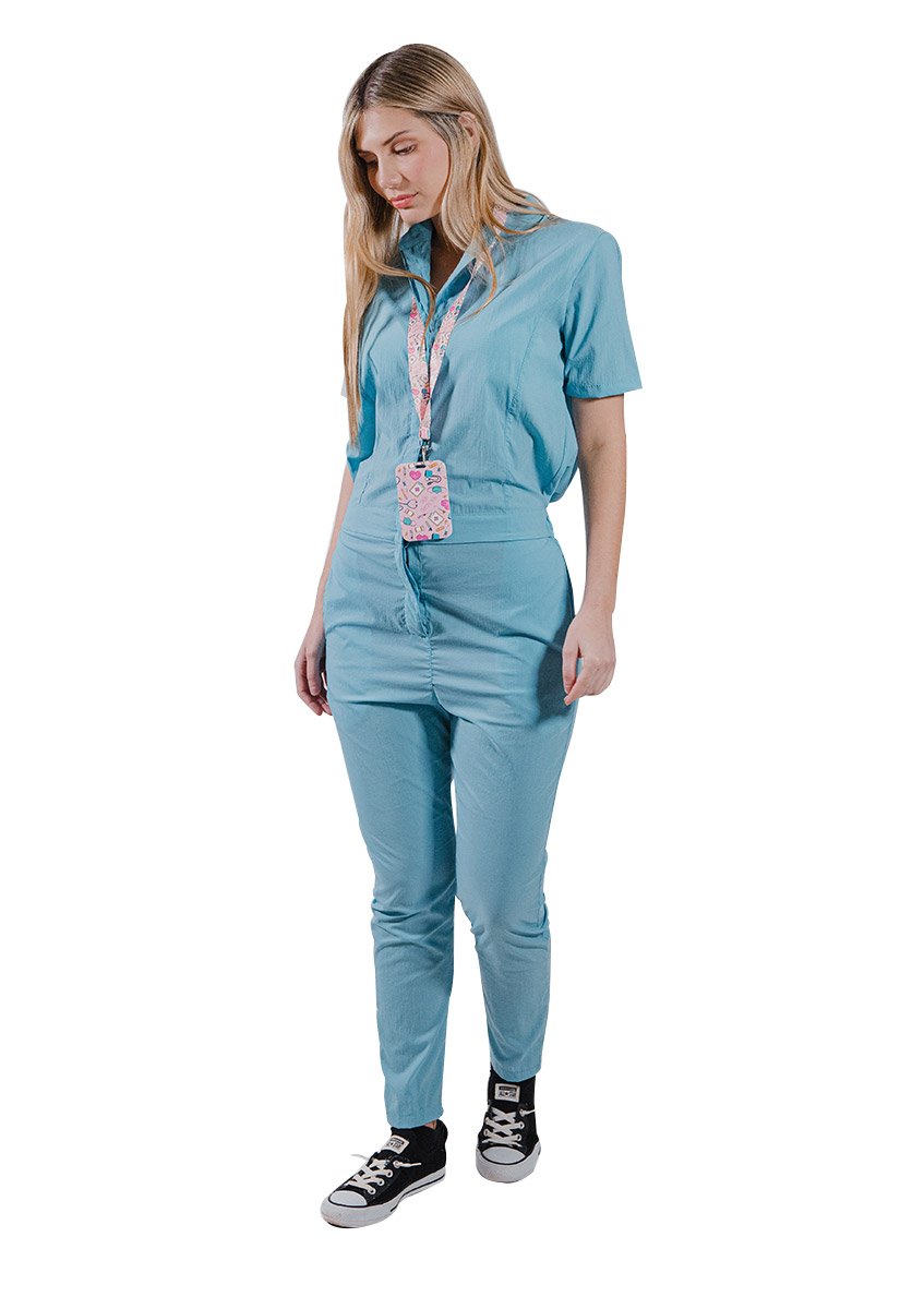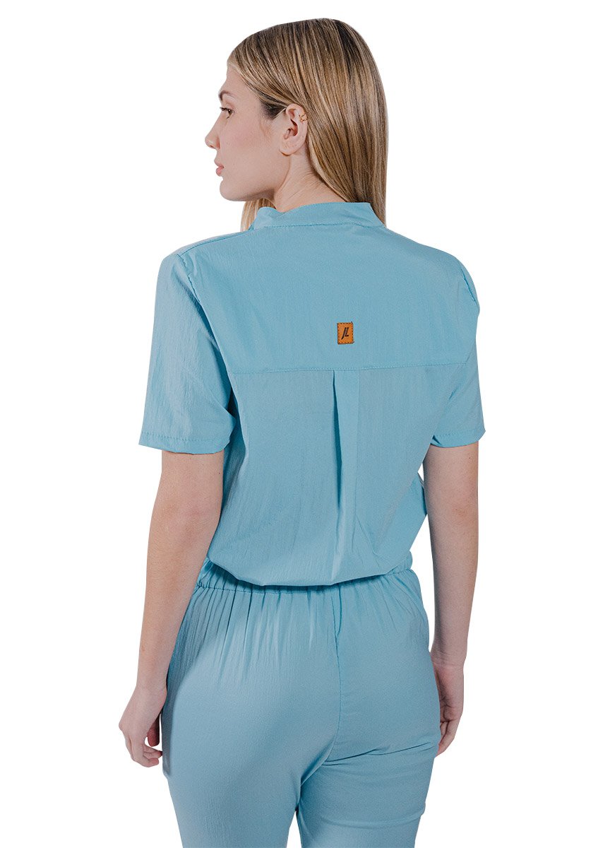 Enterizo tipo camisa con cuello mao y elástico en la cintura