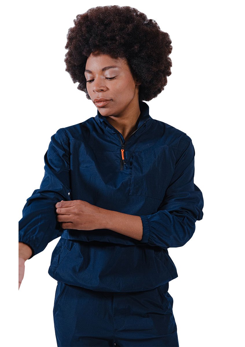 Medio cierre y elástico en cintura y puños